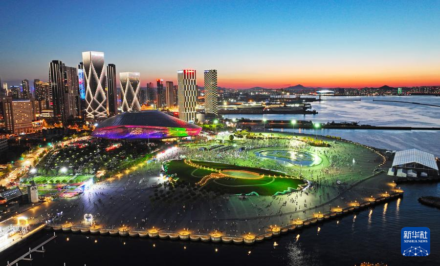 這是6月15日拍攝的夏季達(dá)沃斯論壇主會(huì)場(chǎng)大連國(guó)際會(huì)議中心(無(wú)人機(jī)照片)。新華社記者 楊青 攝
